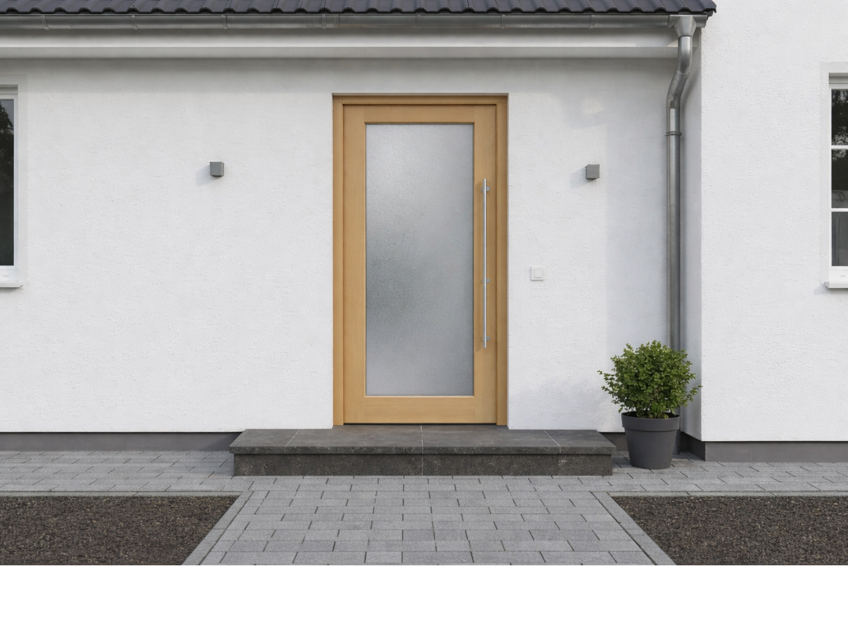 Dank hochwertiger Verarbeitung und wetterfester Oberflächenbehandlung bietet diese Haustür Schutz vor Wind, Kälte und Feuchtigkeit. Holz sorgt für Wärmedämmung und angenehme Haptik. Ohne Glaselemente oder Fräsungen entsteht ein ruhiges Gesamtbild, das ideal zu klassisch-modernen Hausfronten oder Nebenhäusern passt. Die Haustür wird individuell gefertigt und ist ab 20 Arbeitstagen lieferbar – sicher verpackt und direkt an Ihre Adresse.